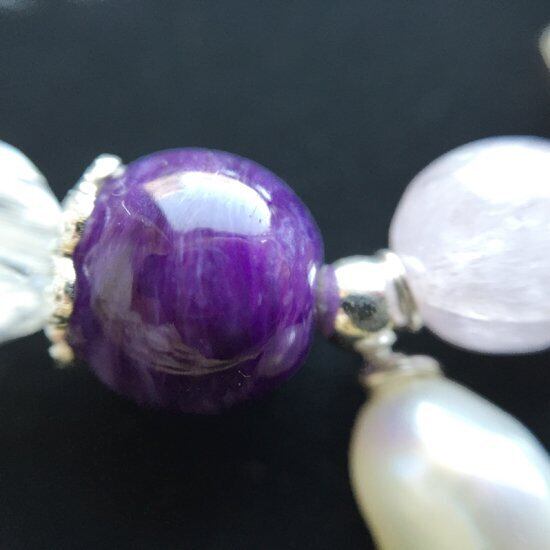 チャロアイト・アゼツライト・クンツァイトに煌めくクリスタルを合わせた、ヒーラーさん・スピリチュアル関係者さまに ぴったりなブレスレットです。